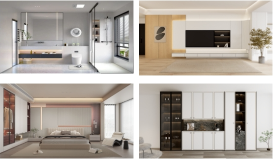 值得一提的是,此次“財年開門紅”活動中,奧華針對2024年度春季新品,推出了四大直享套餐,滿足消費者對頂墻門柜整裝套餐的裝修需求。